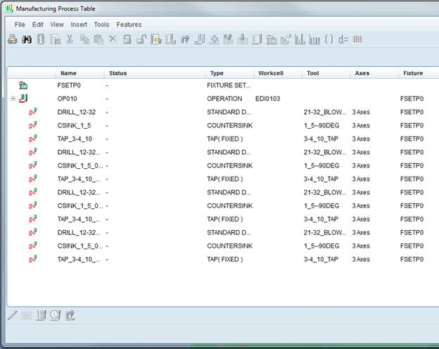Create the desired sequences. In this case, I added drilling, countersinking, and tapping sequences.