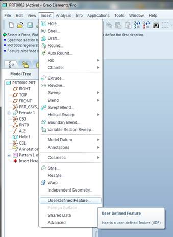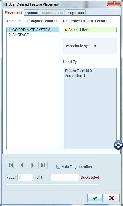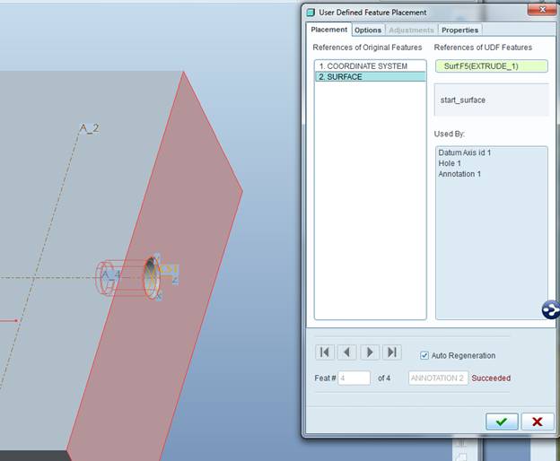 The UDF is placed via a csys. I added a few new coordinate systems to the previously used reference model.