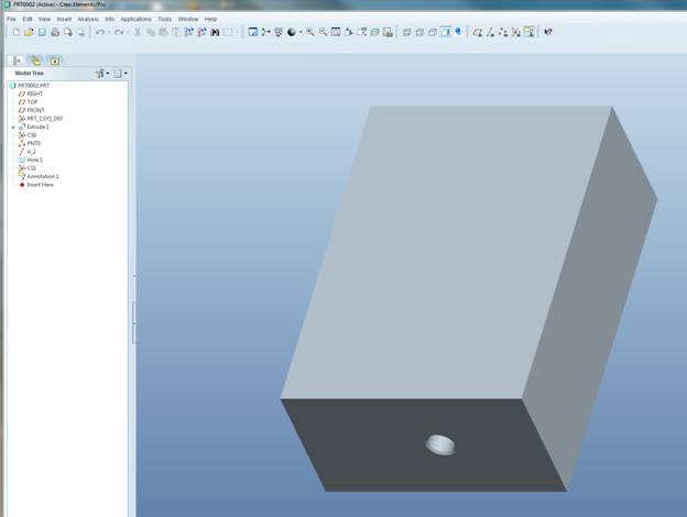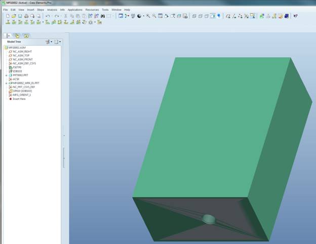 After the point / axis / hole is created, create a manufacturing model with this part as the reference model.