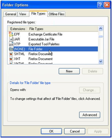 Select Folder Types, then select the File Types column to sort it alphabetically.