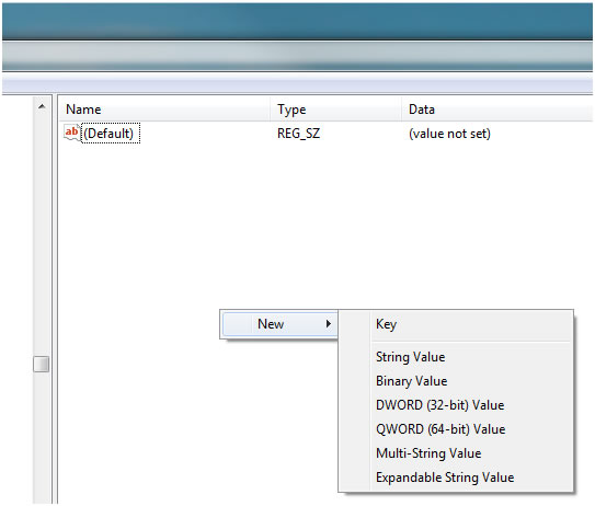 Now to replicate the functionality in Windows 7, we need to use the registry. Standard warnings here, make sure you take necessary steps to backup your registry / machine. Add this functionality at your own risk, etc. You’ve been warned.