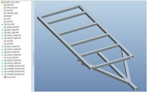 An assembly of a trailer is shown below. The goal here is to create a single part model of the trailer.